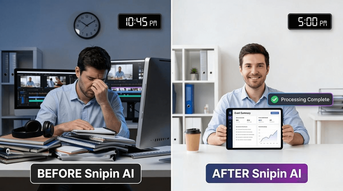 When you use a smart event content insights generator like Snipin AI, your team doesn’t have to spend hours doing boring, repetitive work anymore. Instead, they can use their time to do other important things, like talking to guests and sponsors, making creative content, and coming up with new marketing ideas to get people excited about your events. The tool does the hard part, so your team can focus on the things that really help your event and company grow.