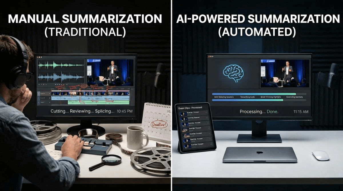 The simplest explanation for this question is that an AI event insights generator makes your work lighter, but manual summarization increases it. Here’s how: