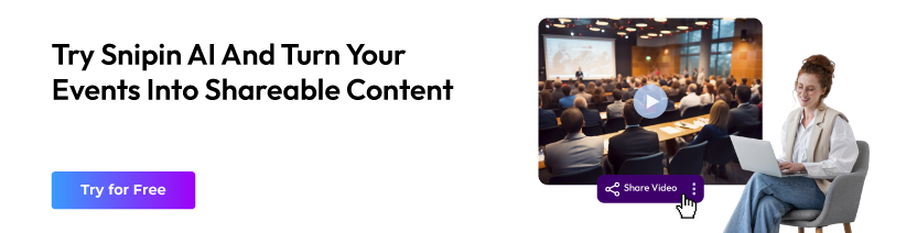 Planning an event is not easy. It requires you to take care of a hundred things. What will be the concept? Where will it take place? How should the setup look? How to market it? The list is endless. Still, after putting your best foot forward, you finally host the event, and it's a massive success. Till here, it sounds dreamy, but what happens after the event? Its buzz leaves along with the guests, and within days of the closing ceremony, your event is just another calendar memory for everyone. The event ends, and so does its magic. That's where an event insights generator like Snipin AI comes to your rescue. It captures your event recording insights and converts them into highly shareable content.
