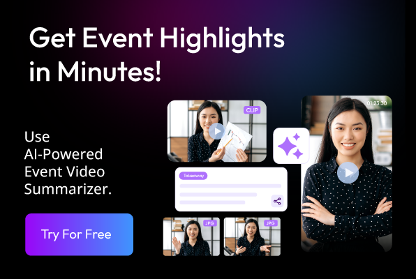 What's the problem? It eats up time, easily a week or two. By then, people who attended might not even be thinking about your event anymore, or at least not as much. People probably won’t be that interested in your recaps after that long. But here's an idea: AI can come to the rescue. An AI event content summarizer can do all that work for you, automatically, and give you the results super fast. Plus, AI can also become your event video summarizer. If you are someone looking to save long edit hours in post-event recap work, this blog is for you! Dive in!